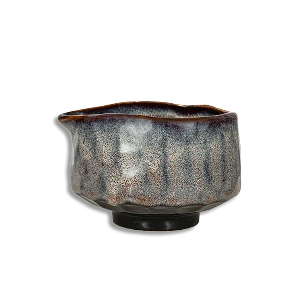 Sumomo-Kerámia-Japán-Matcha-Tál-Kiöntővel-Asztalon-Oldalról